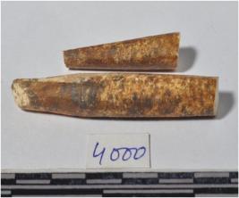 | Description / विवरण | A fragment of a bone point having pointed one side, circular section, of polished surface. |