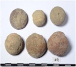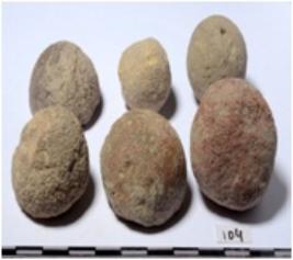 | Description / विवरण | Stone sling balls, round in shape of rough surface. |