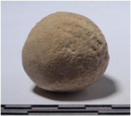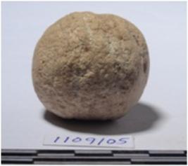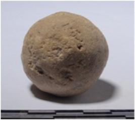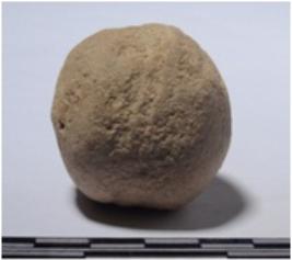 | Description / विवरण | A stone sling boll round in shape, of rough surface. |