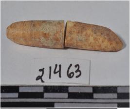 | Description / विवरण | A fragment of a bone point, broken both ends, circular in section and smooth surface. |