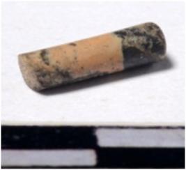 | Description / विवरण | A fragment of a stone drill bit circular in section broken from one end of smooth surface. |