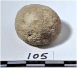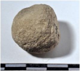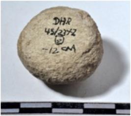 | Description / विवरण | A fragment of a stone sling ball, circular in section of rough surface. |