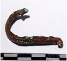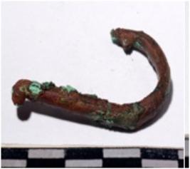 | Description / विवरण | A copper fish hook, circular in section of smooth surface. |
