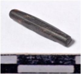 | Description / विवरण | A fragment of a stone drill bit, circular in section, broken from both end of smooth surface. |