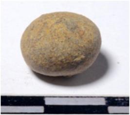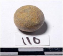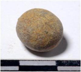 | Description / विवरण | A stone sling ball, round in shape of rough surface. |