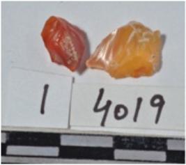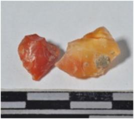 | Description / विवरण | A carnelian flake ridge on the dorsal sides irregular cutting edges of smooth surface. |