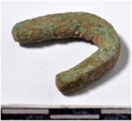 | Description / विवरण | A fragment of a copper hook circular in section of rough surface. |