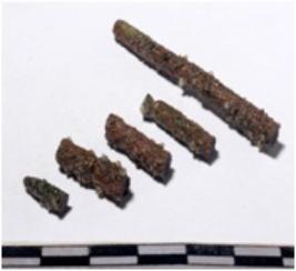 | Description / विवरण | Fragments of a copper nail, broken both end, circular in section of rough surface. |