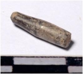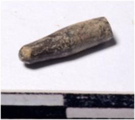 | Description / विवरण | A fragment of a stone drill bit circular in section pointed on one end of smooth surface. |