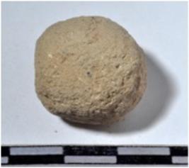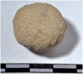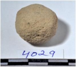 | Description / विवरण | A stone sling ball round in shape of rough surface. |