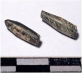 | Description / विवरण | A fragment of a stone drill bit circular in section pointed on one end of smooth surface.. |