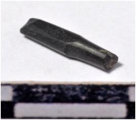 | Description / विवरण | A fragment of a stone drill bit, circular in section, broken both end of smooth surface. |