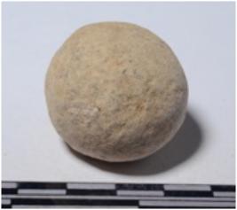 | Description / विवरण | A stone sling ball round in shape of rough surface. |