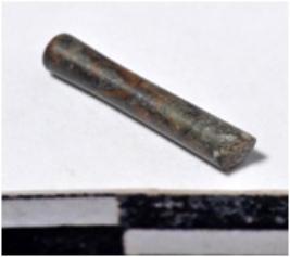 | Description / विवरण | A fragment of a stone drill bit, circular in section, broken from both end of smooth surface. |
