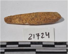 | Description / विवरण | A bone point, pointed at one side circular in section and rough surface. |