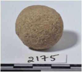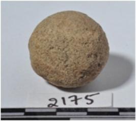 | Description / विवरण | A stone sling ball, round in shape of rough surface. |