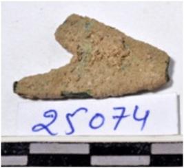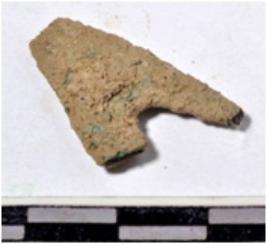 | Description / विवरण | A fragment of a copper arrow head triangular in shape of rough surface. |