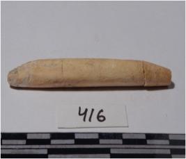 | Description / विवरण | A fragment of a bone stylish having pointed one end, circular in section of polished surface. |