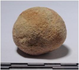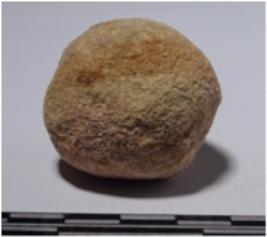 | Description / विवरण | A stone sling ball round in shape of rough surface. |