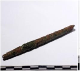 | Description / विवरण | A copper nail, pointed one end, circular in section of rough surface. |