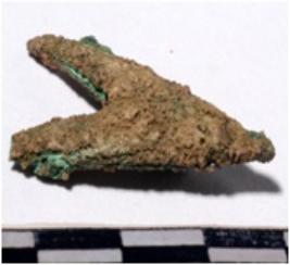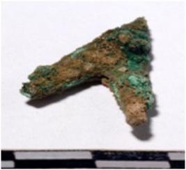 | Description / विवरण | A fragment of a copper arrow head triangular in shape having pointed on one end of rough surface. |