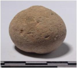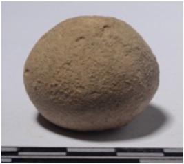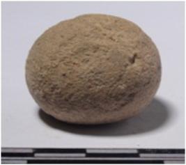 | Description / विवरण | A stone sling ball round in shape of rough surface. |