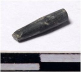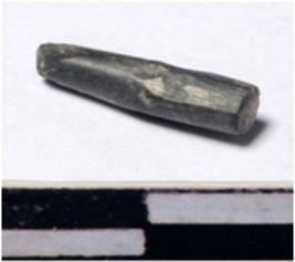 | Description / विवरण | A fragment of a stone drill bit, circular in section, broken from both end of smooth surface. |