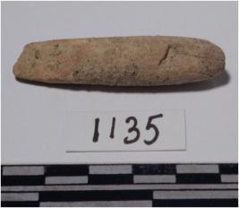 | Description / विवरण | A fragment of a bone arrowhead having sharp edge, oval in section of rough surface. |
