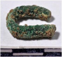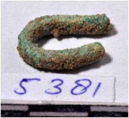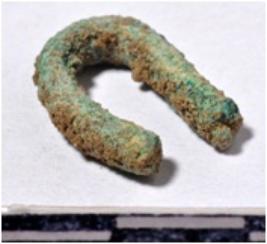 | Description / विवरण | A fragment of a fish hook circular in shape rough surface. |