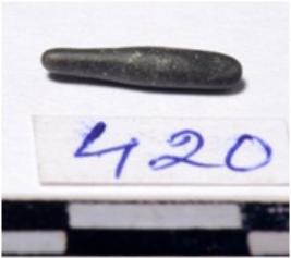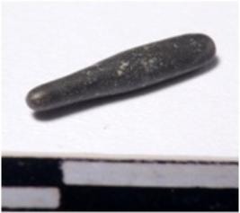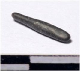 | Description / विवरण | A fragment of a stone drill bit circular in section pointed on one end of smooth surface. |