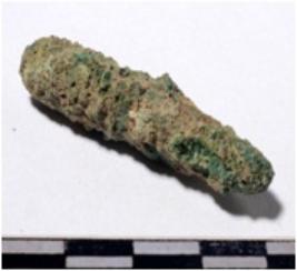 | Description / विवरण | A fragment of a copper rod broken from both end circular in section of rough surface. |