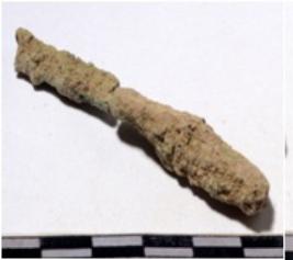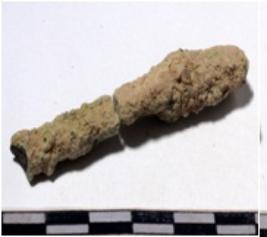 | Description / विवरण | A fragment of a copper rod broken from both end circular in section of rough surface. |
