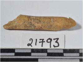 | Description / विवरण | A fragment of a bone point, broken both end, circular in section and smooth surface. |