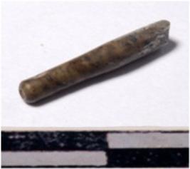 | Description / विवरण | A fragment of a stone drill bit circular in section broken from one end of smooth surface. |