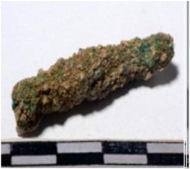 | Description / विवरण | A fragment of a copper rod broken from both side circular in section of rough surface. |