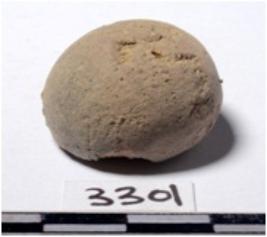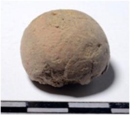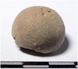 | Description / विवरण | A fragment of a terracotta sling ball, round in shape of rough surface. |