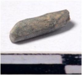| Description / विवरण | A fragment of a stone drill bit circular in section broken from one end of smooth surface. |