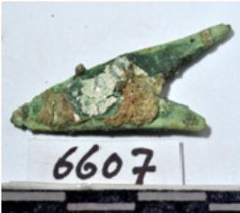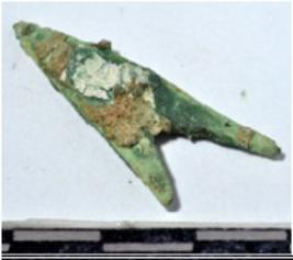 | Description / विवरण | A fragment of a copper arrow head, triangular in shape of rough surface. |