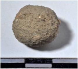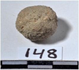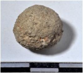 | Description / विवरण | A stone sling ball, round in shape of rough surface. |