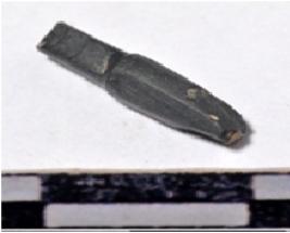 | Description / विवरण | A fragment of a stone drill bit, circular in section broken from both end of smooth surface. |