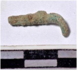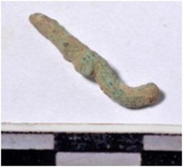 | Description / विवरण | A fragment of a copper fish hook, circular in section of rough surface. |