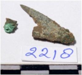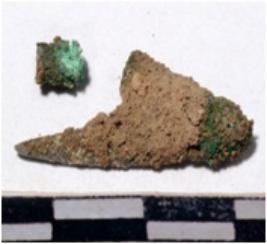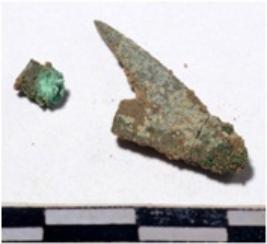 | Description / विवरण | A fragment of a copper arrow head triangular in shape having pointed on one end of rough surface. |