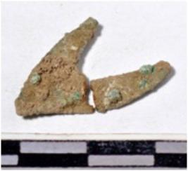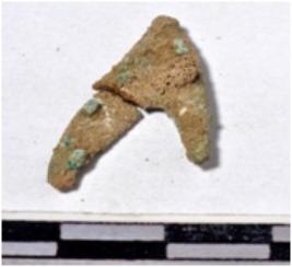 | Description / विवरण | A fragment of a copper arrow head triangular in shape having pointed at one end of rough surface. |