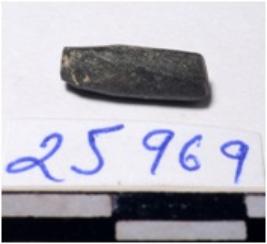 | Description / विवरण | A fragment of a stone drill bit circular in section pointed on one end of smooth surface. |
