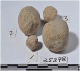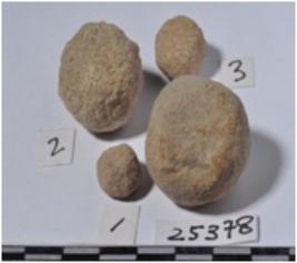 | Description / विवरण | A stone sling ball, round in shape of rough surface. |
