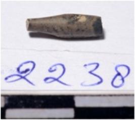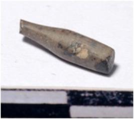 | Description / विवरण | A fragment of a stone drill bit circular in section pointed on one end of smooth surface. |