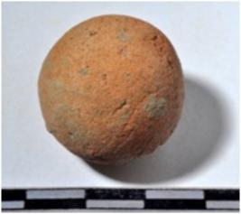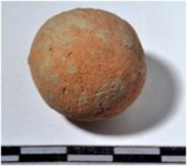 | Description / विवरण | A stone sling ball, round in shape of rough surface. |
