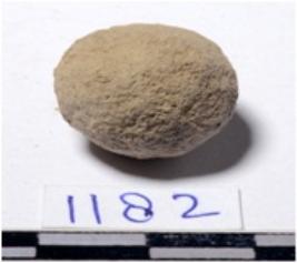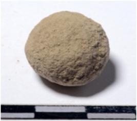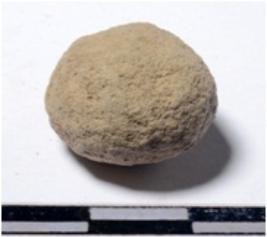 | Description / विवरण | A stone sling ball, round in shape of rough surface. |