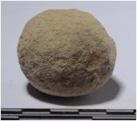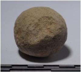 | Description / विवरण | A stone sling ball round in shape of rough surface. |