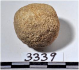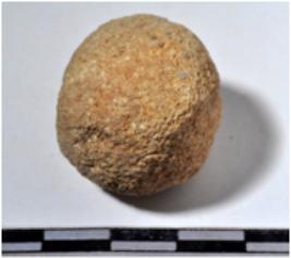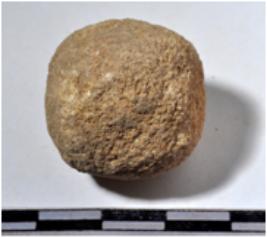 | Description / विवरण | A stone sling ball, round in shape of rough surface. |